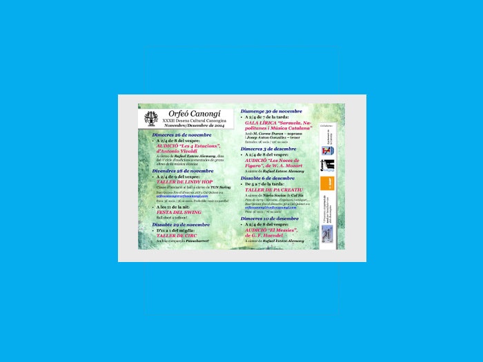 Inscripcions: Fins el 3 de desembre a Cal Quimet o a orfeocanongi@orfeocanongi.com. Preu: 5€ socis / 7€ no socis